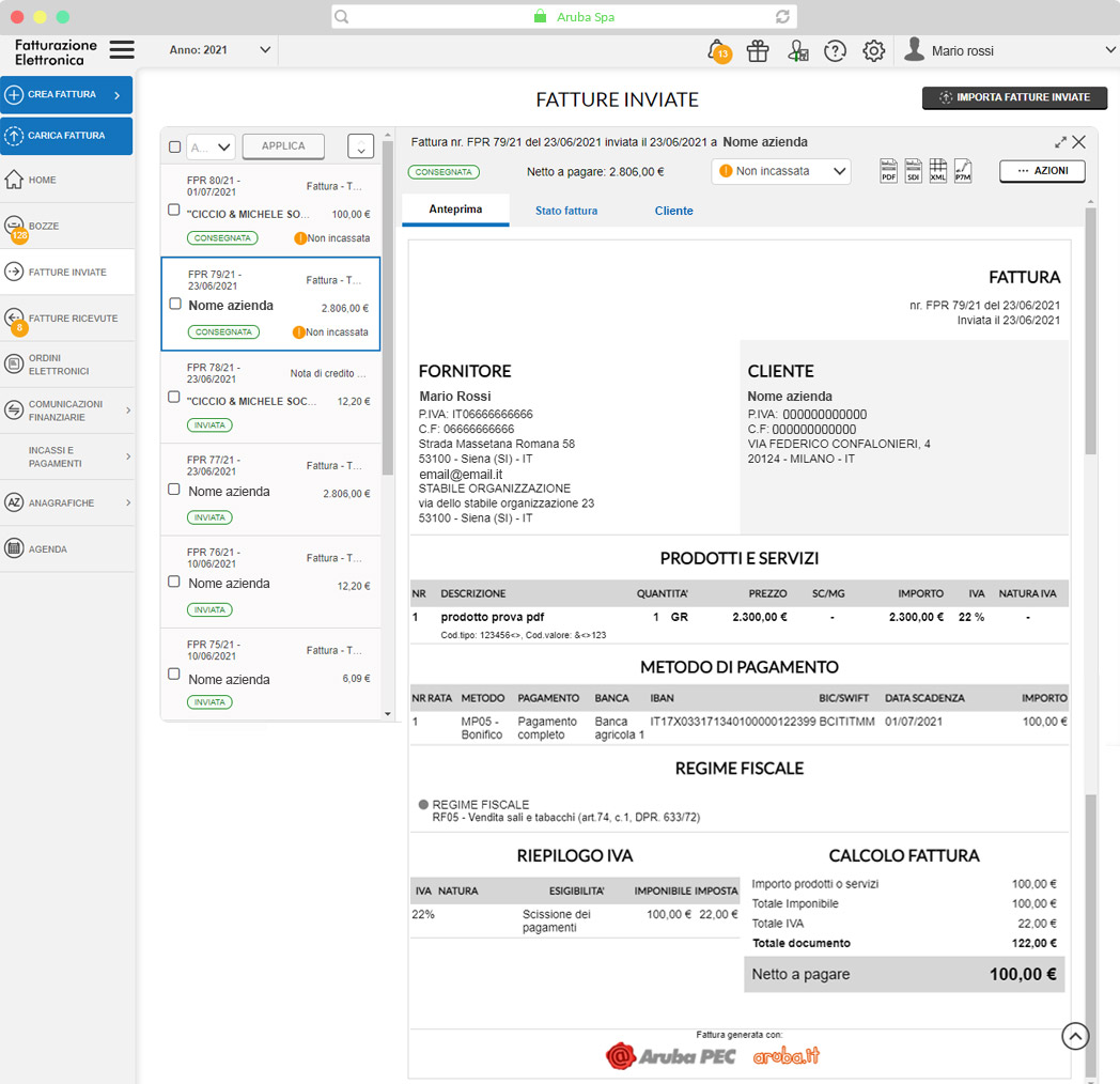 Il Gestionale Di Aruba Per Le Fatture Elettroniche Di Juan Carlos Amati A Roma