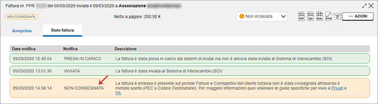 Fattura elettronica non consegnata. Fattura elettronica risulta consegnata ma al cliente PA non è arrivata Fatturazione Elettronica alessandra89 Alessandra 1 Febbraio 2019 1005am. Apri menu principale. Una volta che il file della fattura elettronica è stato trasmesso al SdI questultimo esegue alcuni controlli e se tali controlli sono superati trasmette il file allindirizzo.